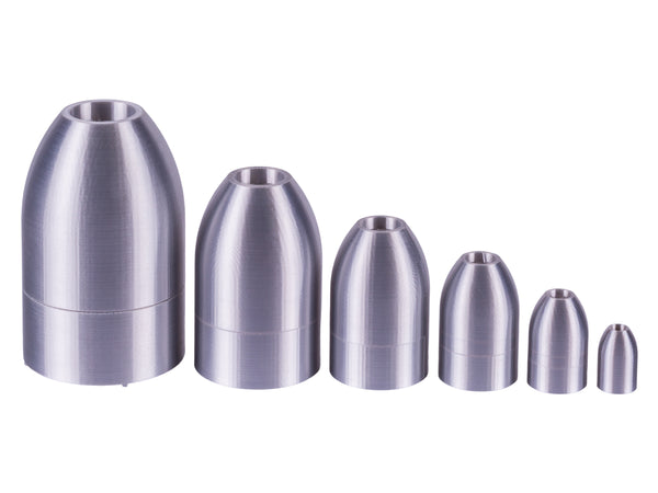 The sizes range from 2" diameter at the largest to just under 1/2" diameter for the smallest. These make a great gift for your favorite slug shooter or a great display piece to show everyone how much you love NSA Slugs. You could even use the individual slugs to store your favorite NSA projectiles!